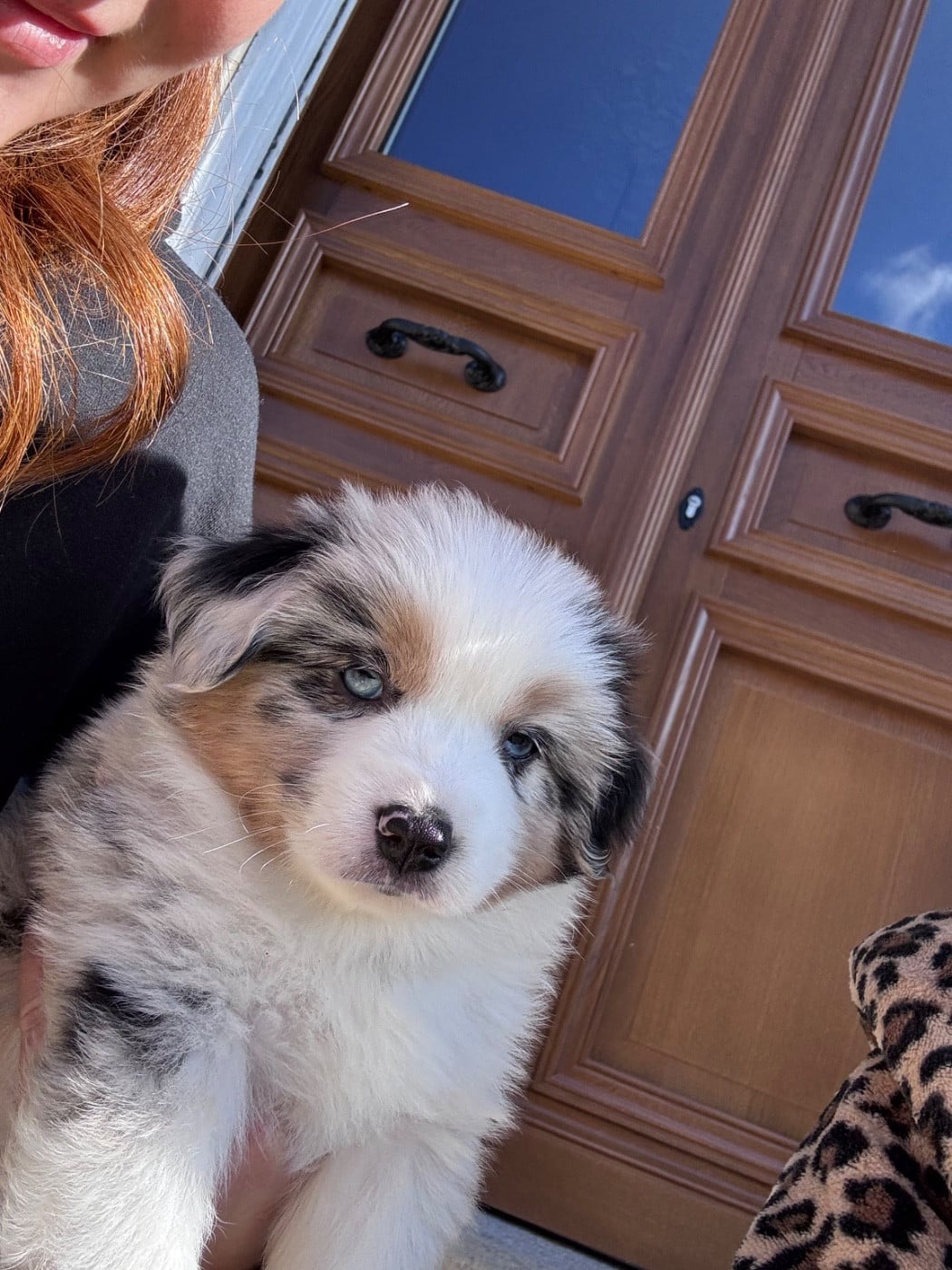 Femelle bleue merle gabarit standard (+- 14kg) Disponible uniquement pour la compagnie. Bibi est très joueuse et attachante . Une petite tache noire sur l iris la caractérise, sans aucune incidence sur sa vision, ni sur sa santé .